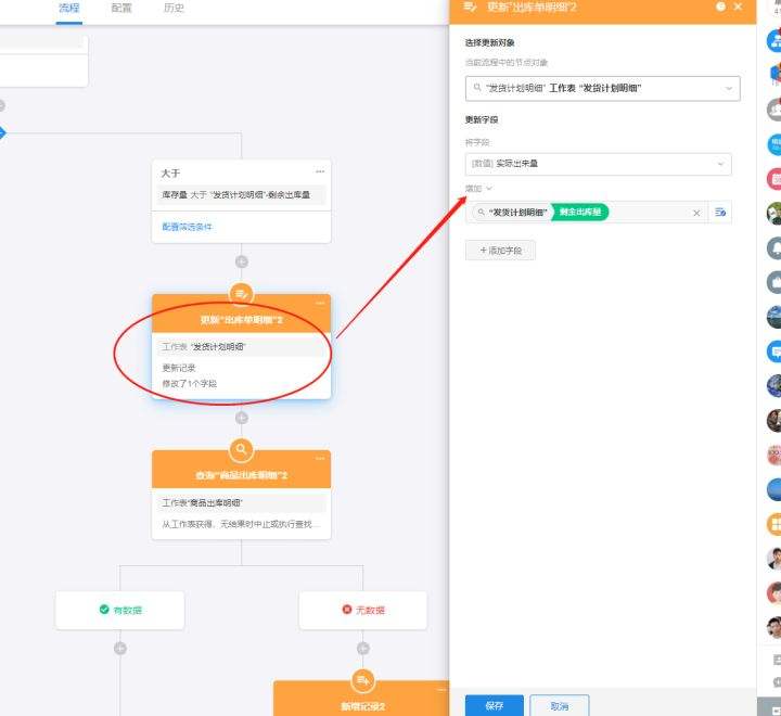第二种分支就是库存量大于剩余出库量,因为足够出完,所以更新发货计划中的实际出库量【递增】剩余出库量,然后新增出库明细表,最后更新库存量【递减】剩余出库量,余下未出库存量。先后顺序一定要注意库存最后更新结果。