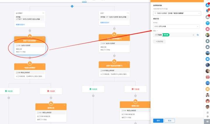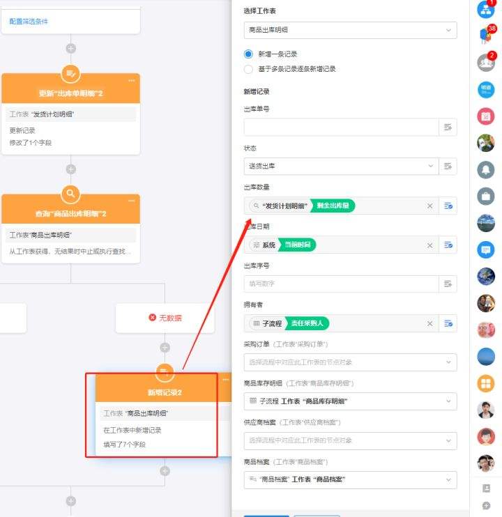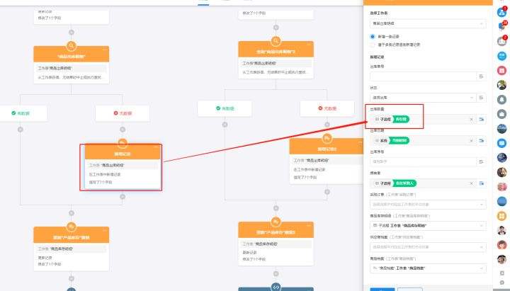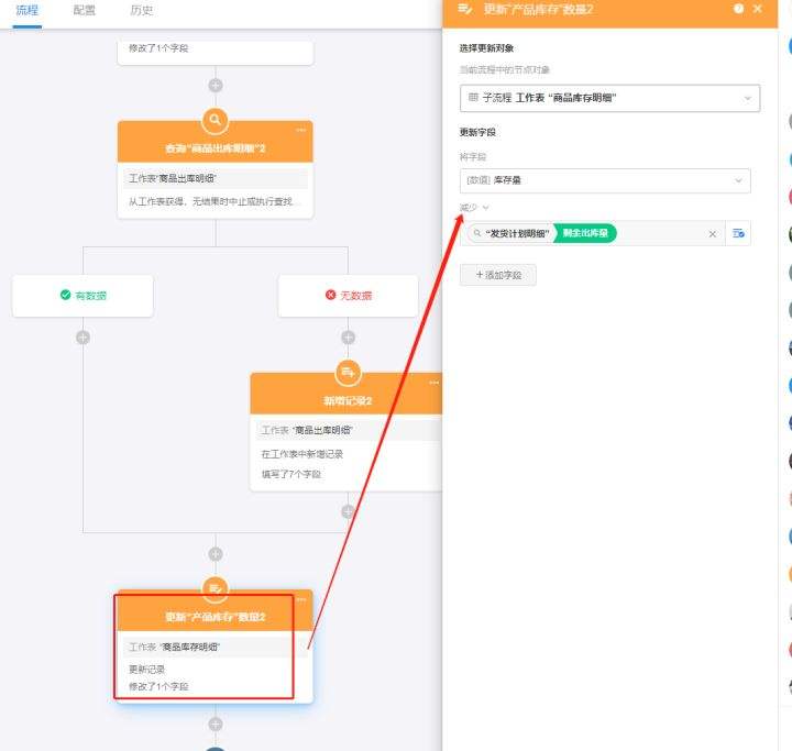 进入【查询库存】先进先出逐条递减的子流程设计界面,这时候触发条件是库存明细表,所以还要查找出上一个子表的表单(发货计划明细表)。