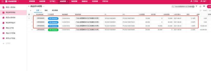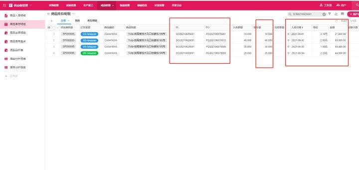 有一家外贸公司,市场部接到一个数量是 10w 的单笔订单。采购部分批采购,成品也是分批到货,这时候我们就可以按照 PO(采购单逐条登记数量和单价,库区办理入库),形成同一个 PI 但是不同 PO 的库存记录。