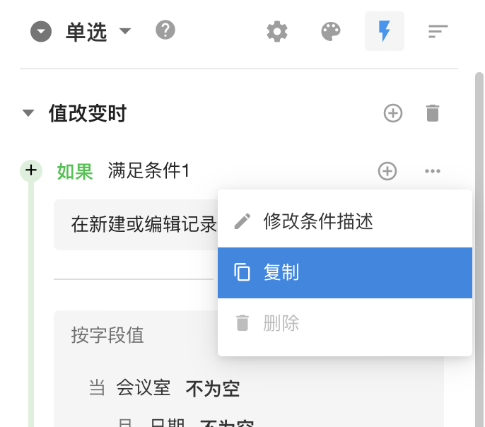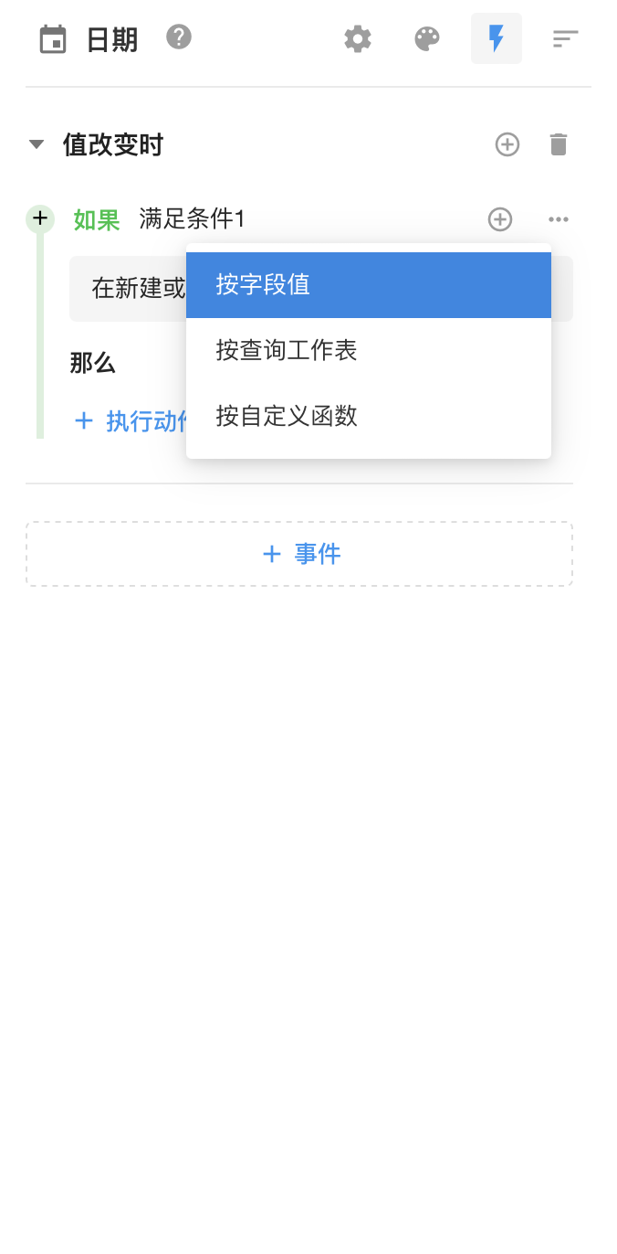 在“如果满足条件”处点击右侧菜单中的“按字段值”,添加满足字段值筛选的条件,这一步主要是检查所有字段都不能为空: