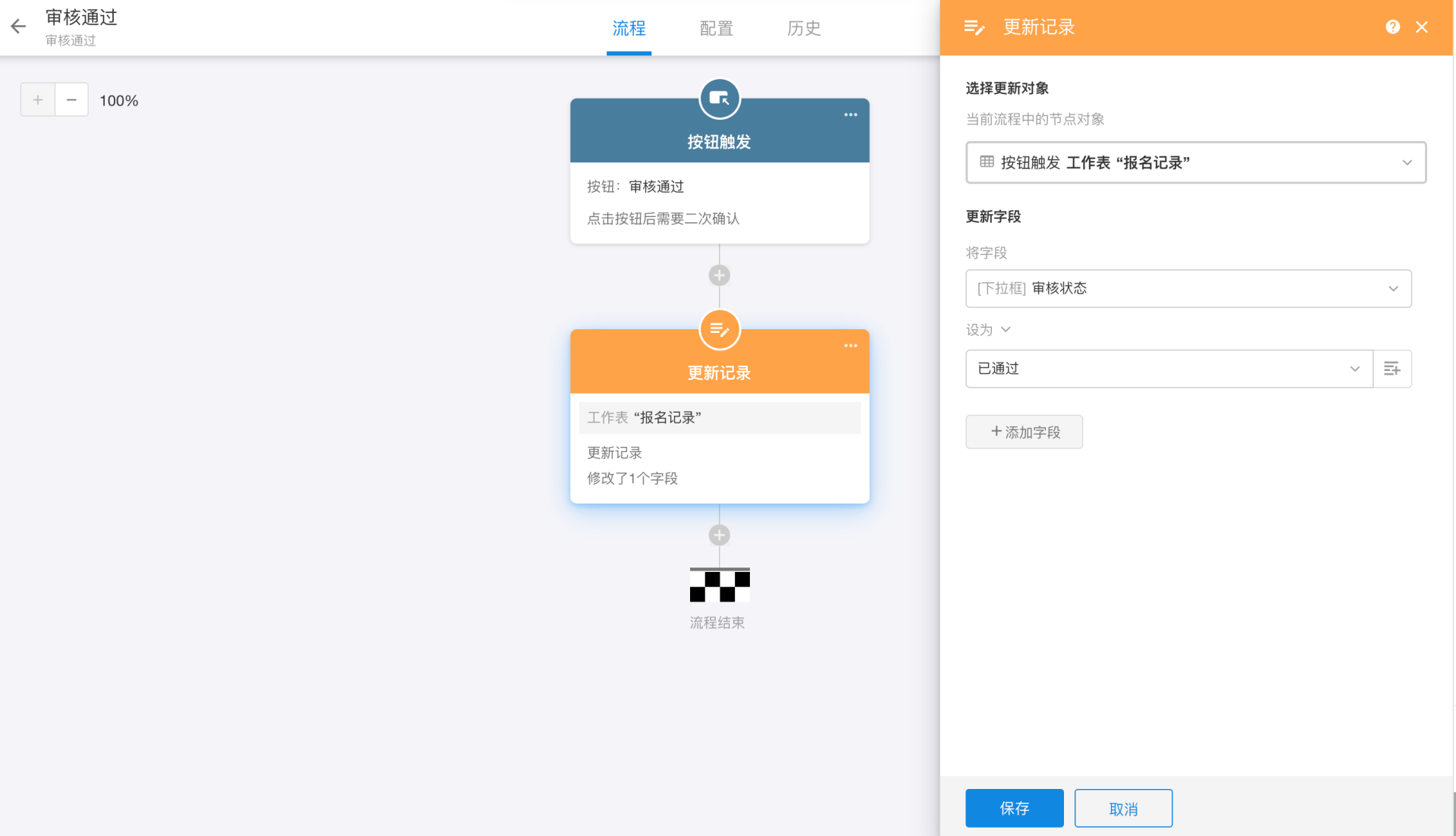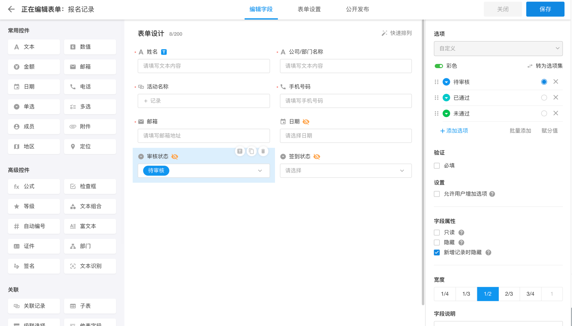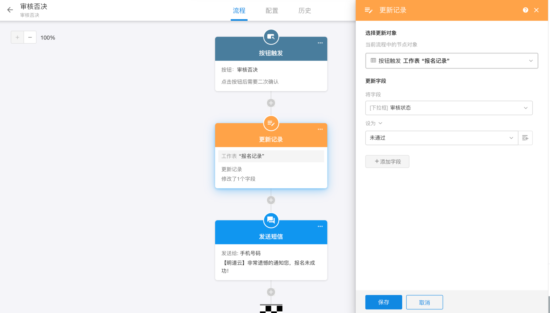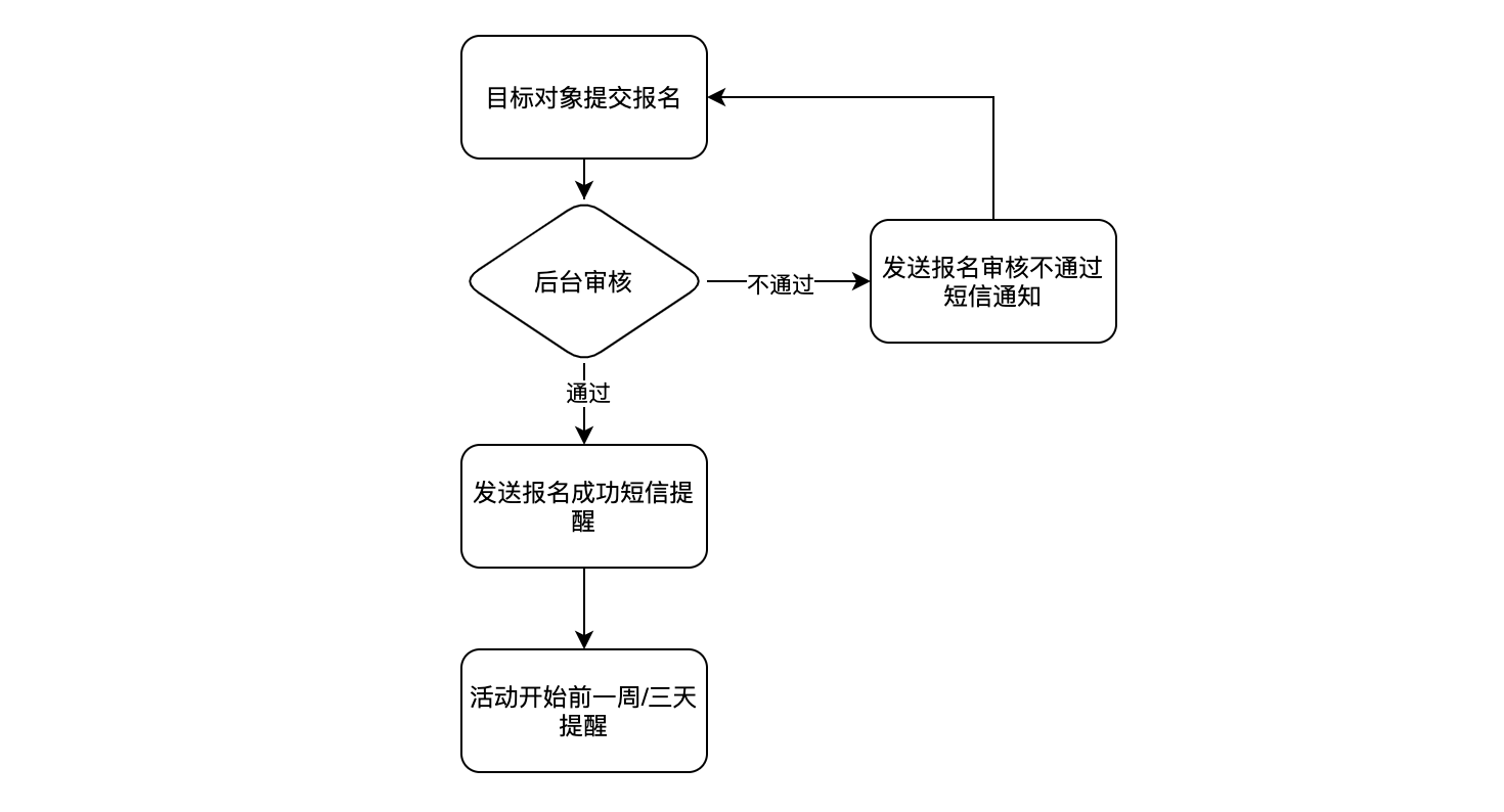 - 审核工作流,报名信息提交后审核通过与不通过,标记报名审核状态。