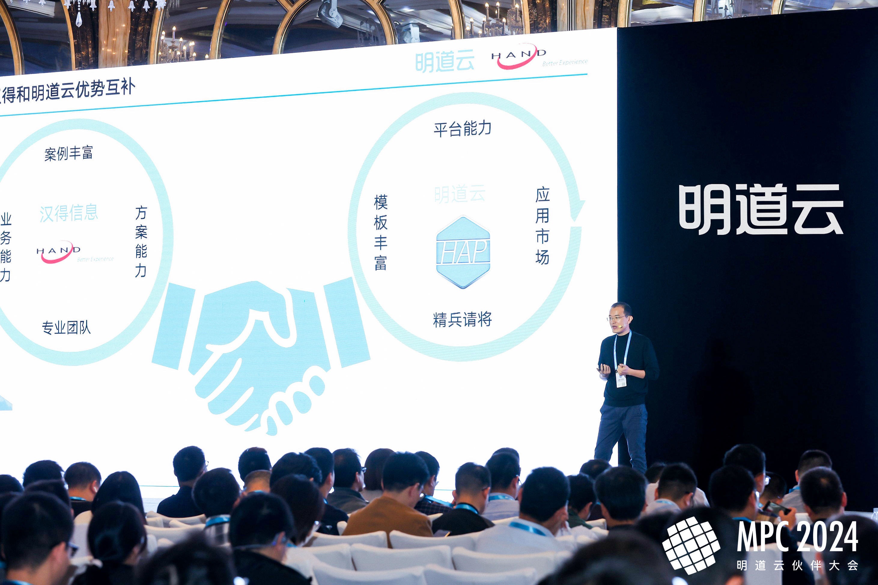 2024 年 10 月 25 日至 10 月 26 日,MPC2024(Mingdao Partner Conference)在上海星河湾酒店顺利举行。大会邀请到明道云标杆客户及合作伙伴分享组织落地零代码的经验及各行业领域解决方案,包括赛力斯集团、中建新疆建工集团、深汕特别合作区、深圳市龙华区卫健局、中国地质大学、汉得信息等知名企业和单位。