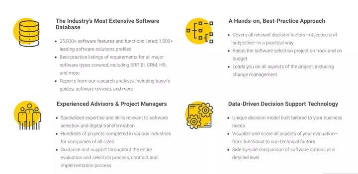 企业软件是一个专业化程度很高的行业,对于一般企业客户来说,评估开始前的需求定义不需要过于细节,而是要着眼于期望给自己带来的业务价值。在真正的评估开始之前,功能点甚至都无法列举得出来。但是让我们明确自己所想要得到的成果后,通过横向对比软件产品,自然能够把需求背后的功能点发现出来。