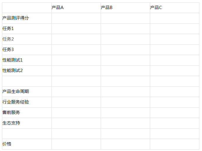 通过以上五步漫长的过程,客户就可以将得到可以横向比较的产品列在一个表格中,汇总测评任务清单结果、资质和服务评估项,以及价格。有这些丰富的维度,想买错产品都很难。
