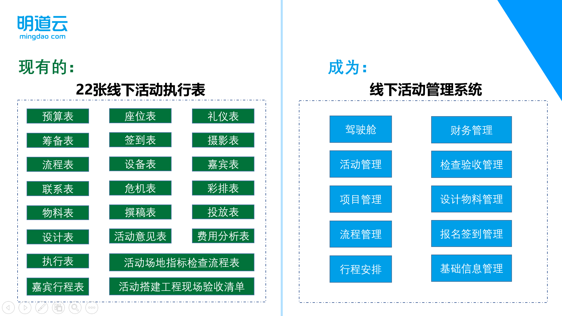 本期明道云直播夜,我们邀请了明道云资深销售顾问刘俊良,以业务繁琐细碎的活动管理为场景实例,为大家详细讲解如何明道云代替 Excel 进行数据流以及工作流的管理,简化数据管理体系,提高业务对接和流转的效率。