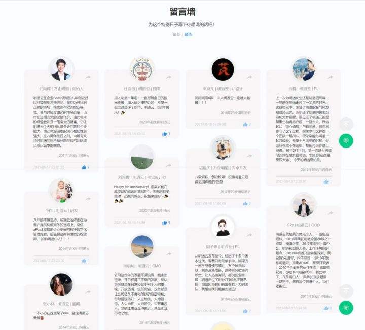 站在八周年的时间节点里,我们向全体明道云用户开放留言墙,邀请大家写下想对明道云说的话。
