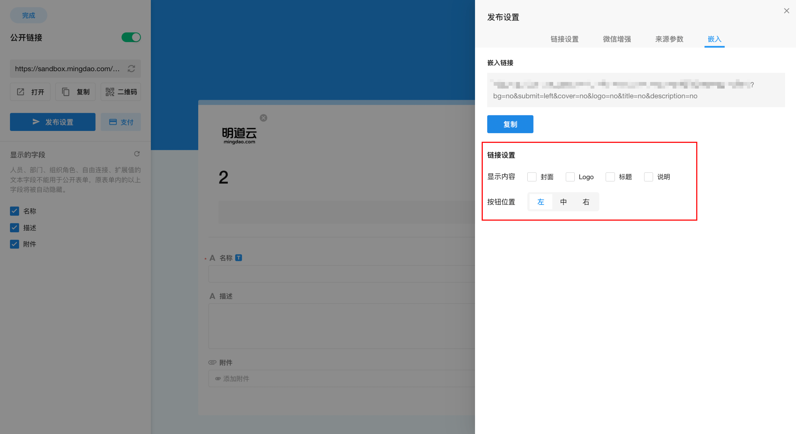 - 若想实现跳转表单页面时代入一些基础信息参考:https://help.mingdao.com/worksheet/custom-functions/?_highlight=%E8%87%AA%E5%AE%9A%E4%B9%89&_highlight=%E5%87%BD%E6%95%B0#url-query