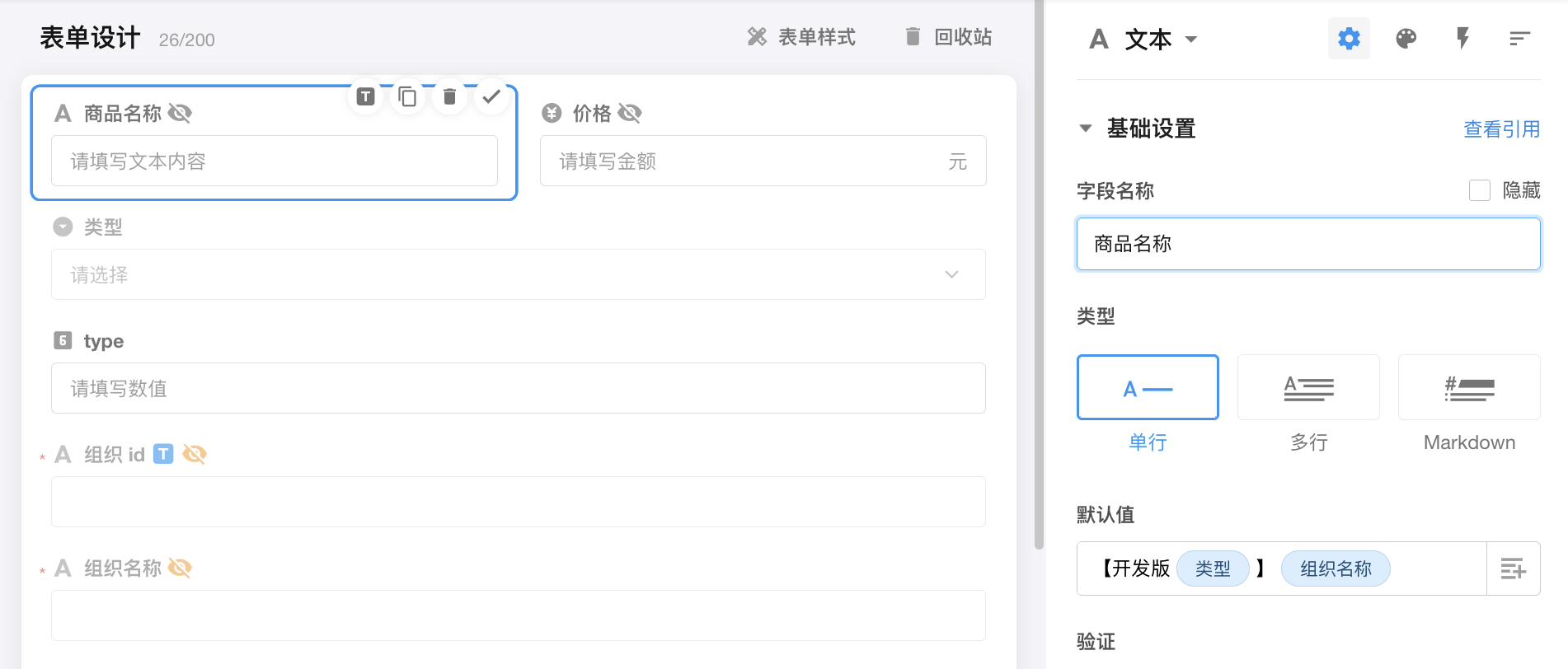 | 下单人 | 文本 | 组织内提交:会写入创建者的 accountId 公开表单提交:固定文案“user-publicform” |