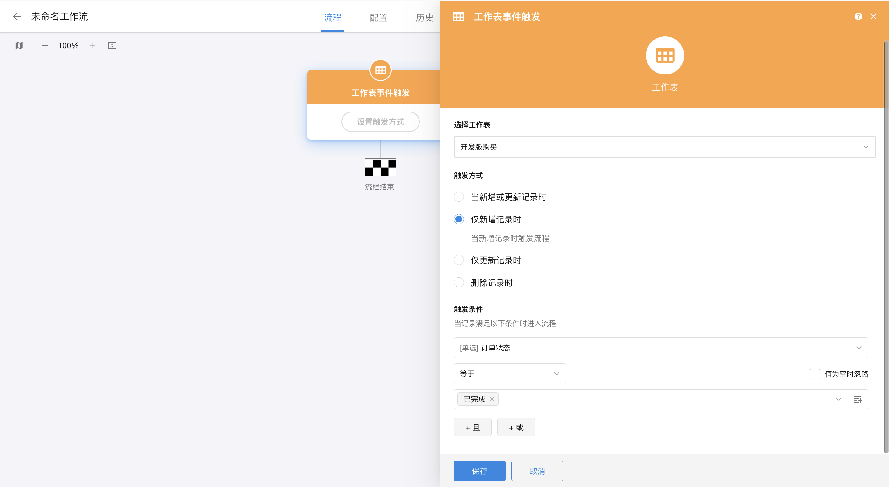 可以通过工作表事件来实现当订单支付完成后,执行其他业务流程(如 API 的调用等)