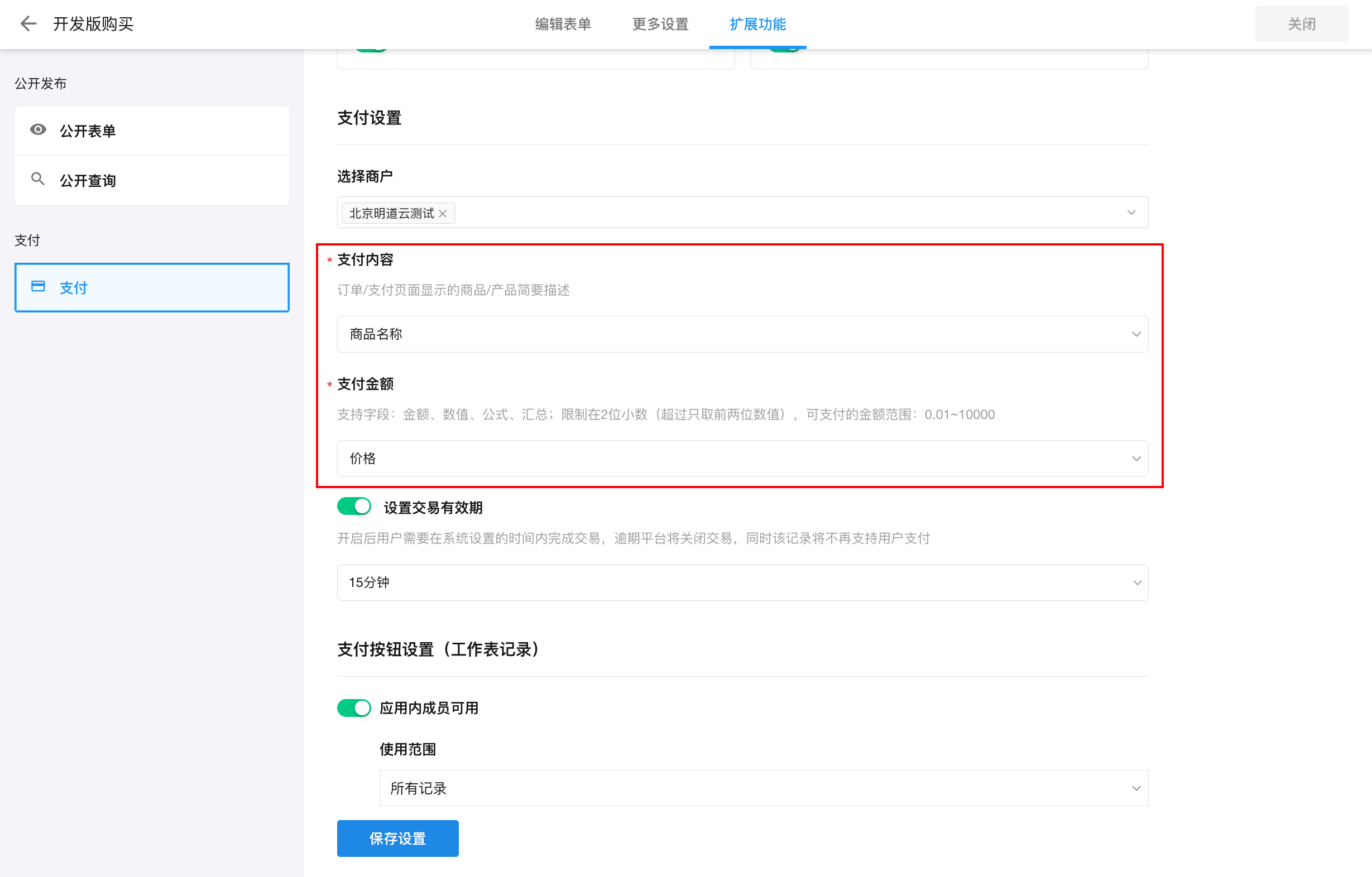 适用于会员管理、活动报名、软件购买等需要在线支付的场景,可以根据实际业务需求通过支付配置完成在线收款。详细介绍:https://help.mingdao.com/org/payment?_highlight=%E5%85%AC%E5%BC%80&_highlight=%E8%A1%A8%E5%8D%95&_highlight=%E6%94%AF%E4%BB%98#online-payment