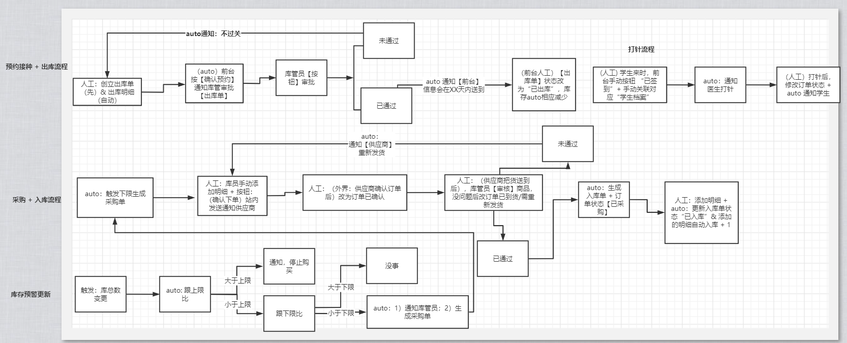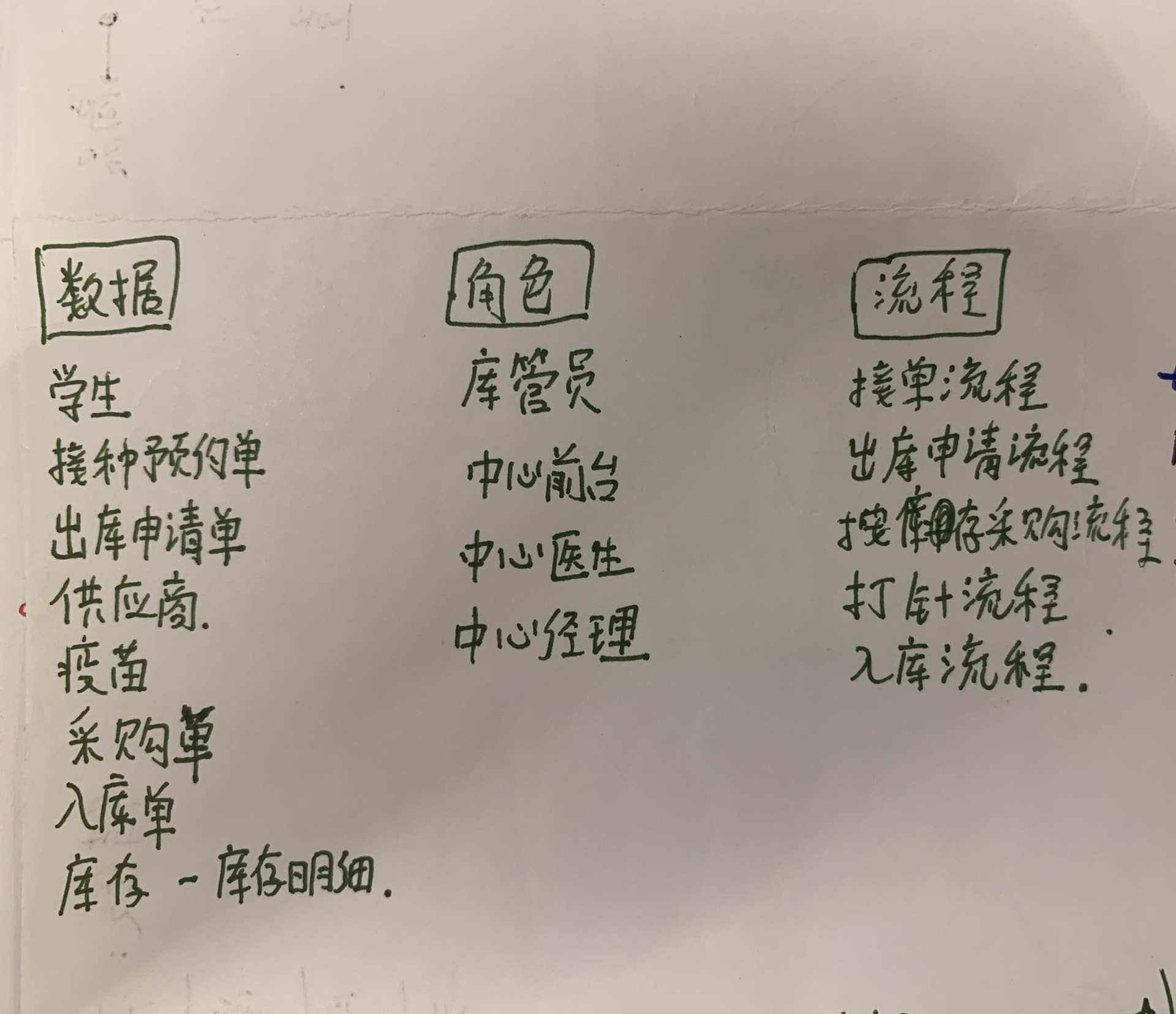因为工作流是跟需求相挂钩的,我首先确定了想实现的具体功能,我希望搭建的学校疫苗中心管理,能满足以下三点需求:
