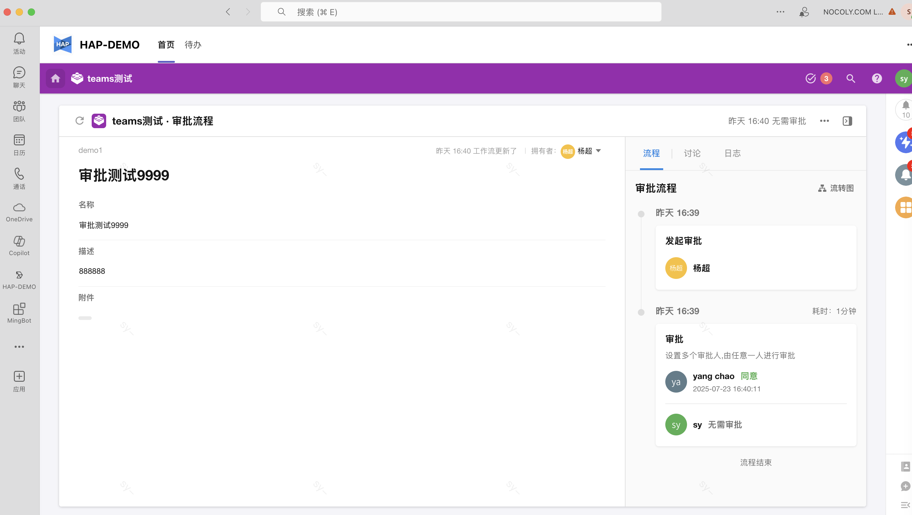 • 界面定制:支持对 Teams 内的明道云应用界面进行部分个性化配置,例如添加 “待办” 标签页,集中展示待处理任务、待审批事项等,提升工作效率。