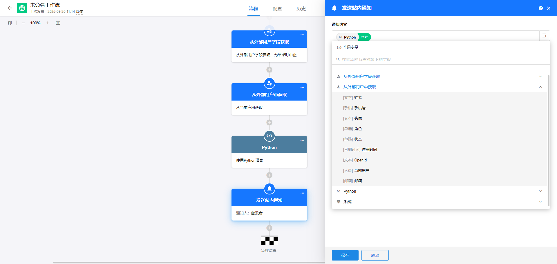 增加了外部门户的拓展标签,但是工作流节点获取不到,有没有别的招 😭