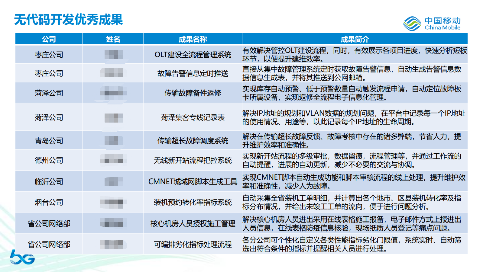 随着培训的进行,山东移动内部也组织了开发成果分享答辩,在短短不到一个月的时间里,学员们已经产出了几十个优秀应用成果,场景之丰富,可谓是百花齐放!