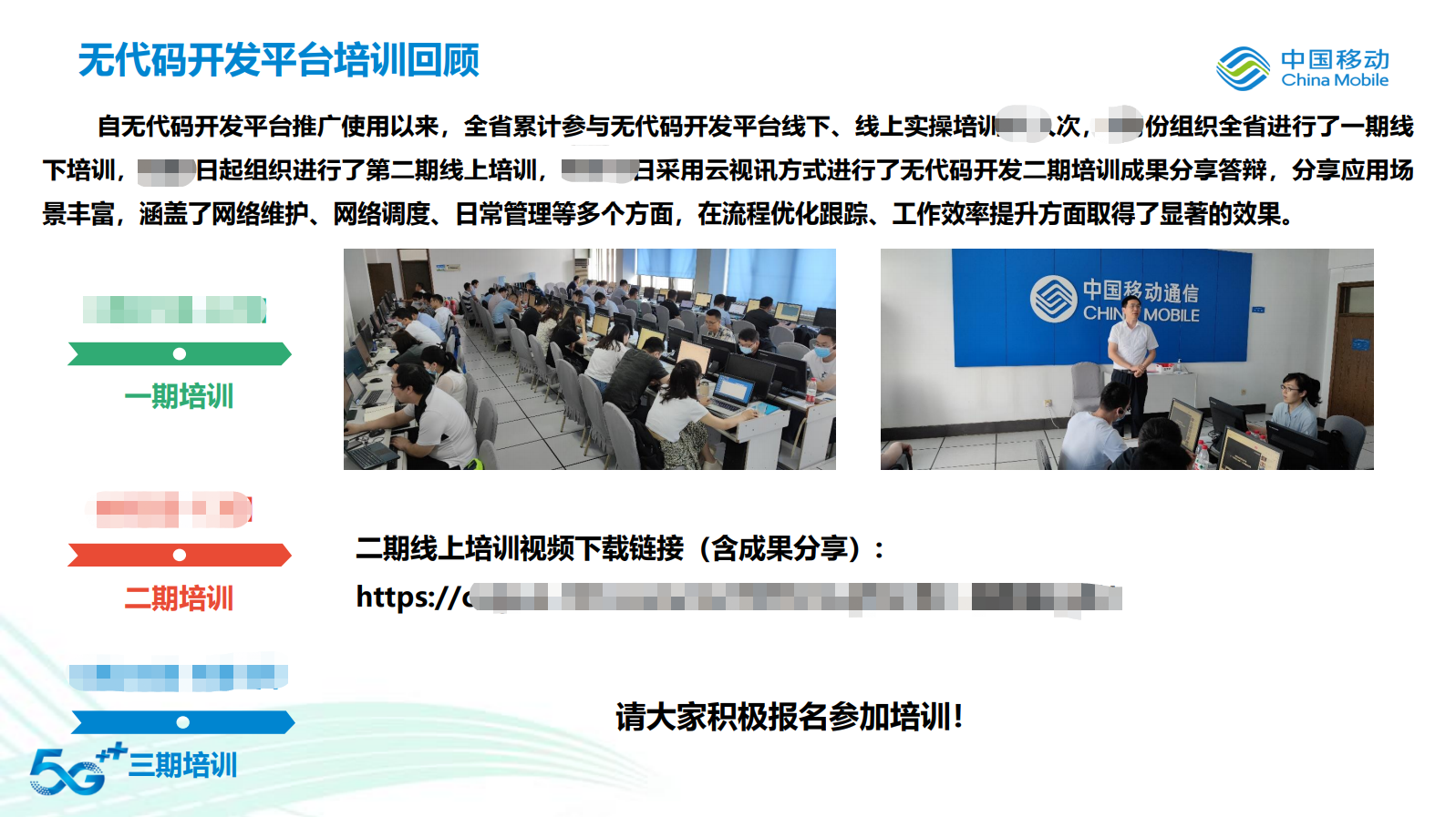 经过双方紧密配合、高效推进,在七月底,山东移动正式采购了明道云。采购仅仅是第一步,接下来的推广落地才是重中之重。为了让公司员工尽可能快速掌握无代码应用搭建方法、将明道云应用在各部门业务场景中,网管中心赵总组织召开了全公司的无代码开发平台培训会议。