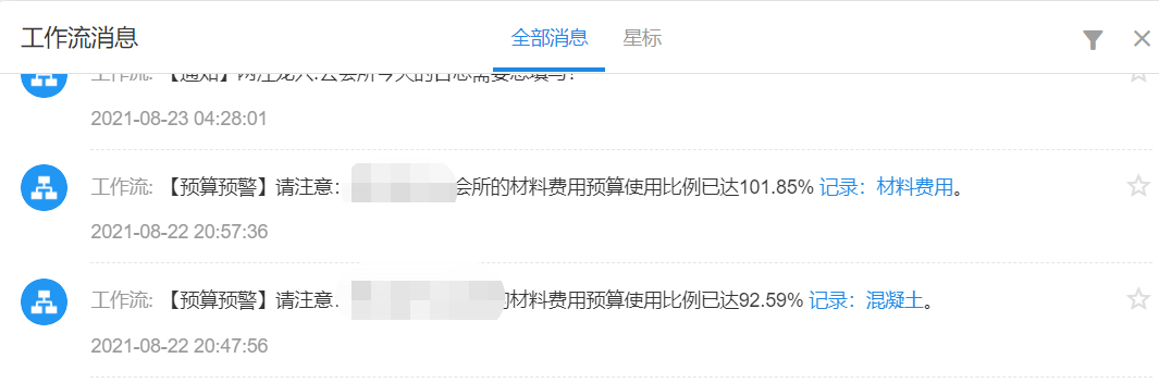 设置预警比例,费用发生一定比例变化及时通知相关人员。