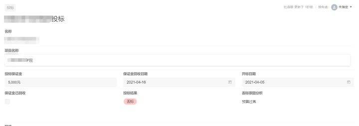 投标进度管理、投标结果分析、投标保证金回收提醒。