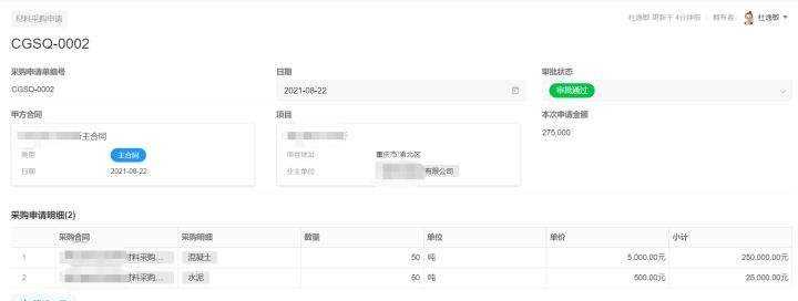 采购签订框架合同,可以依据施工现场实际采购申请单,进行材料费用控制,每次申请时进行预警判定。