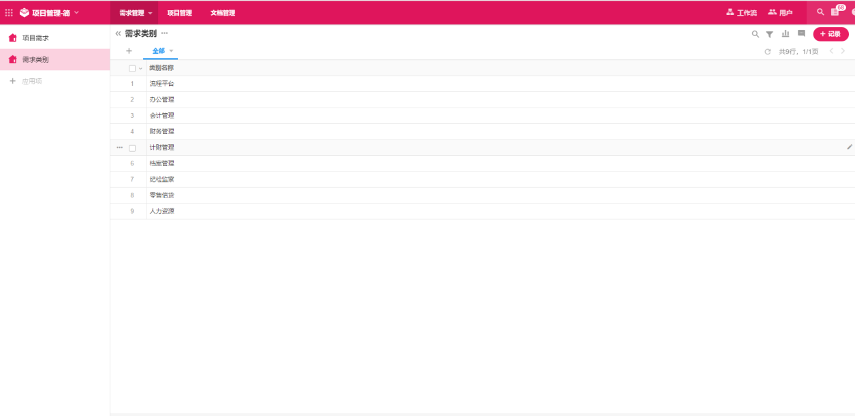 完成需求分类之后,项目实施顾问按照需求类别立项,并将不同类别的需求关联到对应的项目中统一管理。为了增加这个项目管理应用在其他行业项目上的可用性,我们还将需求类别单独设立了一张工作表记录。