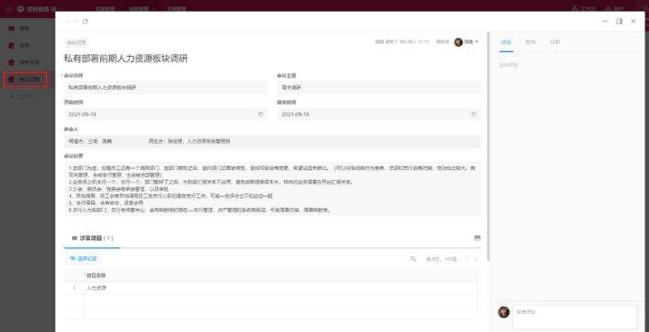在项目管理里,我们还设置了会议记录,将每一次线下会议的讨论内容都放在这里。