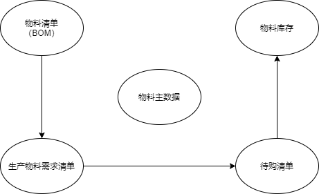 在一个 MRP 系统中,数据对象并不复杂,主要以物料主数据为核心,其他对象均是它的衍生物,比如物料清单(BOM)、物料需求清单、库存信息、待购清单等。我们大致可以得到以下对象关系网: