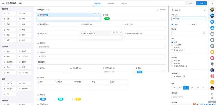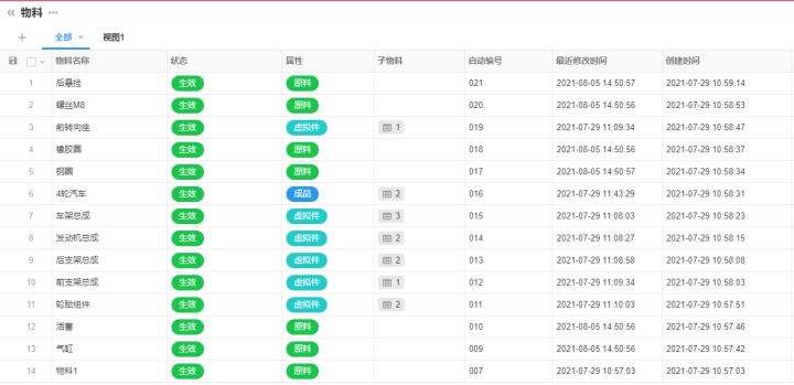 在明道云内,我们可以将相关信息用工作表来维护,物料主数据信息如下图所示。