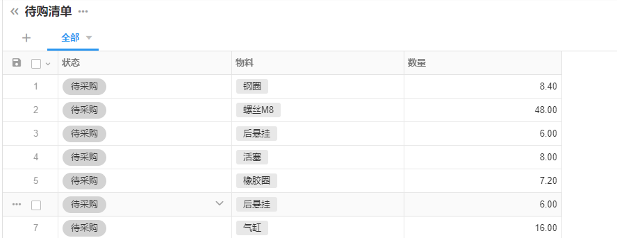 - 从工作表获取:从待购清单获取,查找该物料是否存在于待购清单,如果不存在,则新增一条数据,待购数量为 0